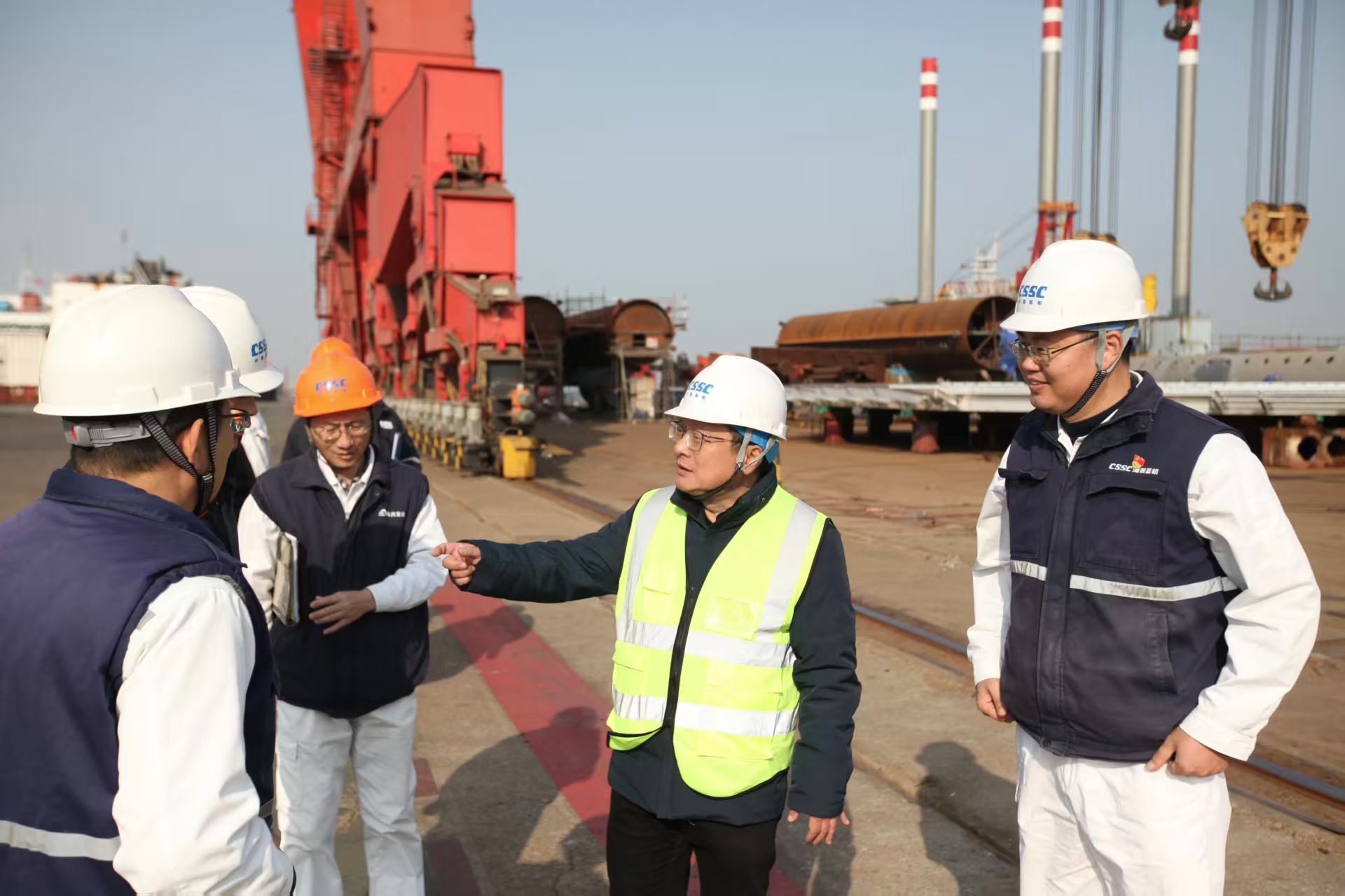 在海西重機,潘文勝重點檢查了重大事故隱患、危險作業(yè)、有限空間、消防管理、?;贰⒛_手架以及生產現(xiàn)場目視化管理等安全管理執(zhí)行情況,對海工平臺項目安全管理、現(xiàn)場安全目視化及小件存放等工作給予肯定。就后續(xù)安全管理工作,潘文勝提出三點要求:一是以PT38平臺項目為示范點,形成完整的策劃方案和指導性文件,進一步提升平臺項目安全管理水平;二是推進海工平臺消防管理標準化建設,在固定消防器材基礎上,實行動火作業(yè)點消防器材動態(tài)配置,提升平臺消防保障能力;三是優(yōu)化總配電站應急響應機制,構建變配電系統(tǒng)雙重應急聯(lián)動響應機制,提升應急管理響應效率和處置能力。