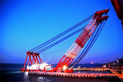 大型浮式起重機也稱為起重船或浮吊,可采用雙臂架結構,起重量可達3600噸,起升高度可達110米,廣泛應用于沿海及近海的大型橋梁和設備的吊運、安裝及打撈作業(yè)等。該類起重機起重量大、起升高度高,操作方便、靈活、準確,維修方便,能滿足施工海域風大、浪高、水深、流急等惡劣海況的要求,技術達到國內領先水平。