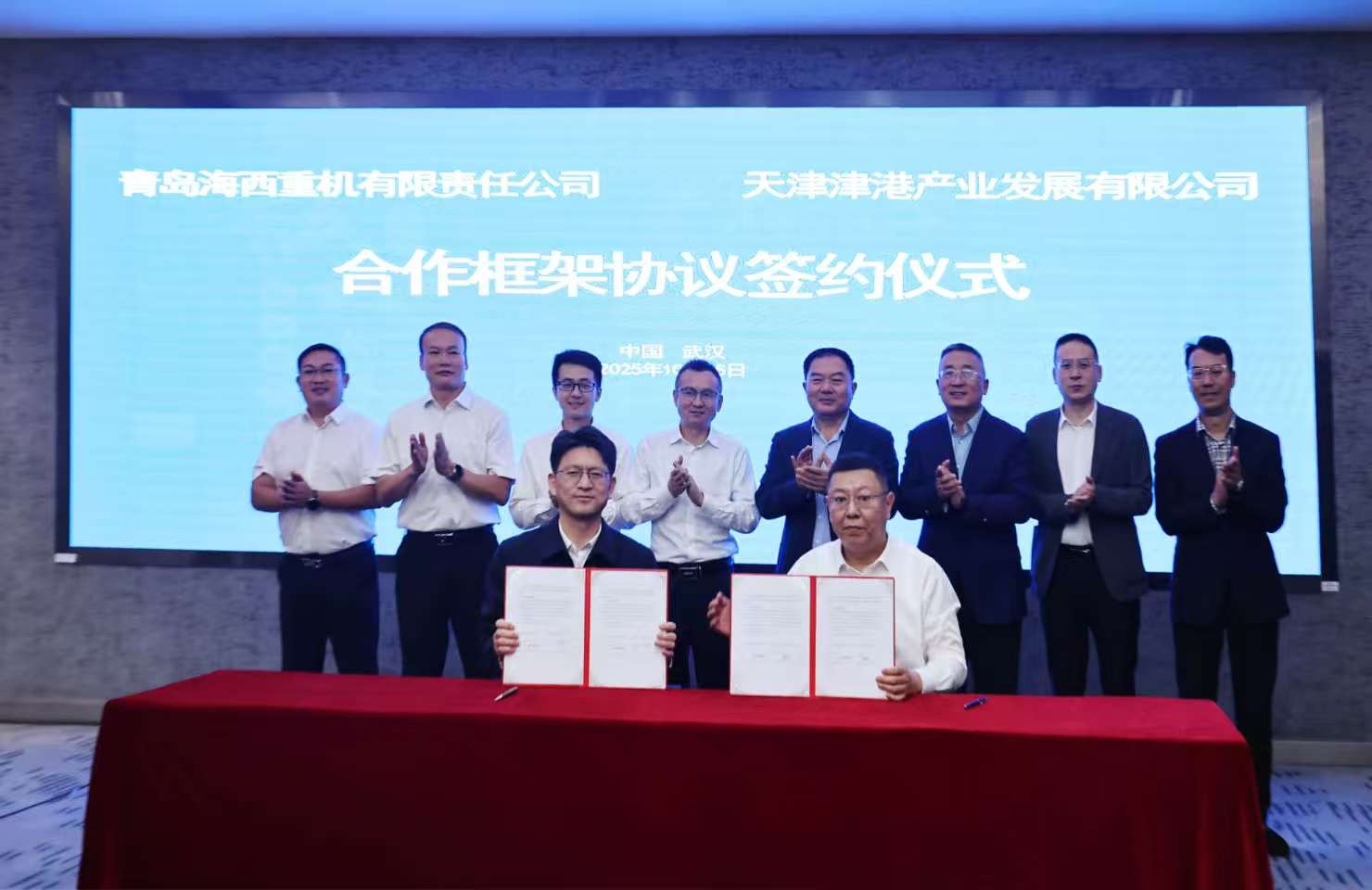 10月15日,中船集團(tuán)武漢船機(jī)黨委副書記、總經(jīng)理程立兵會見天津港(集團(tuán))有限公司黨委副書記、總裁焦廣軍一行,并共同見證青島海西重機(jī)有限責(zé)任公司與天津津港產(chǎn)業(yè)發(fā)展有限公司簽署合作框架協(xié)議。武漢船機(jī)副總經(jīng)理程文池、總經(jīng)理助理溫青富、天津港集團(tuán)副總裁安國利參與會見。